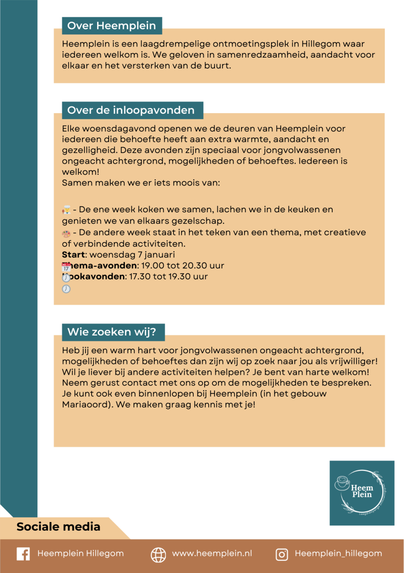 "Heemplein is een fantastische plek waar iedereen zich welkom voelt. De activiteiten zijn divers en er is altijd een gezellige sfeer!"